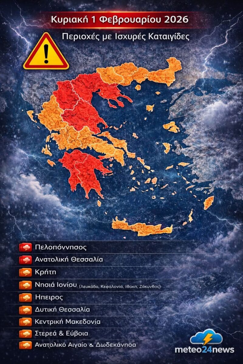 Παρακαλώ την προσοχή στις μετακινήσεις σας για αύριο Κυριακή 1 Φεβρουαρίου 2026 λόγω των έντονων καιρικών φαινομένων.