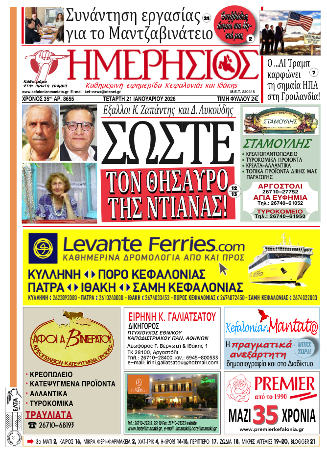 Πρωτοσέλιδο Ημερήσιος: Τι γράφει σήμερα 21 Ιανουαρίου