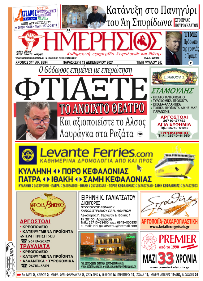 Πρωτοσέλιδο Ημερήσιος: Τι γράφει σήμερα Παρασκευή 13 Δεκεμβρίου