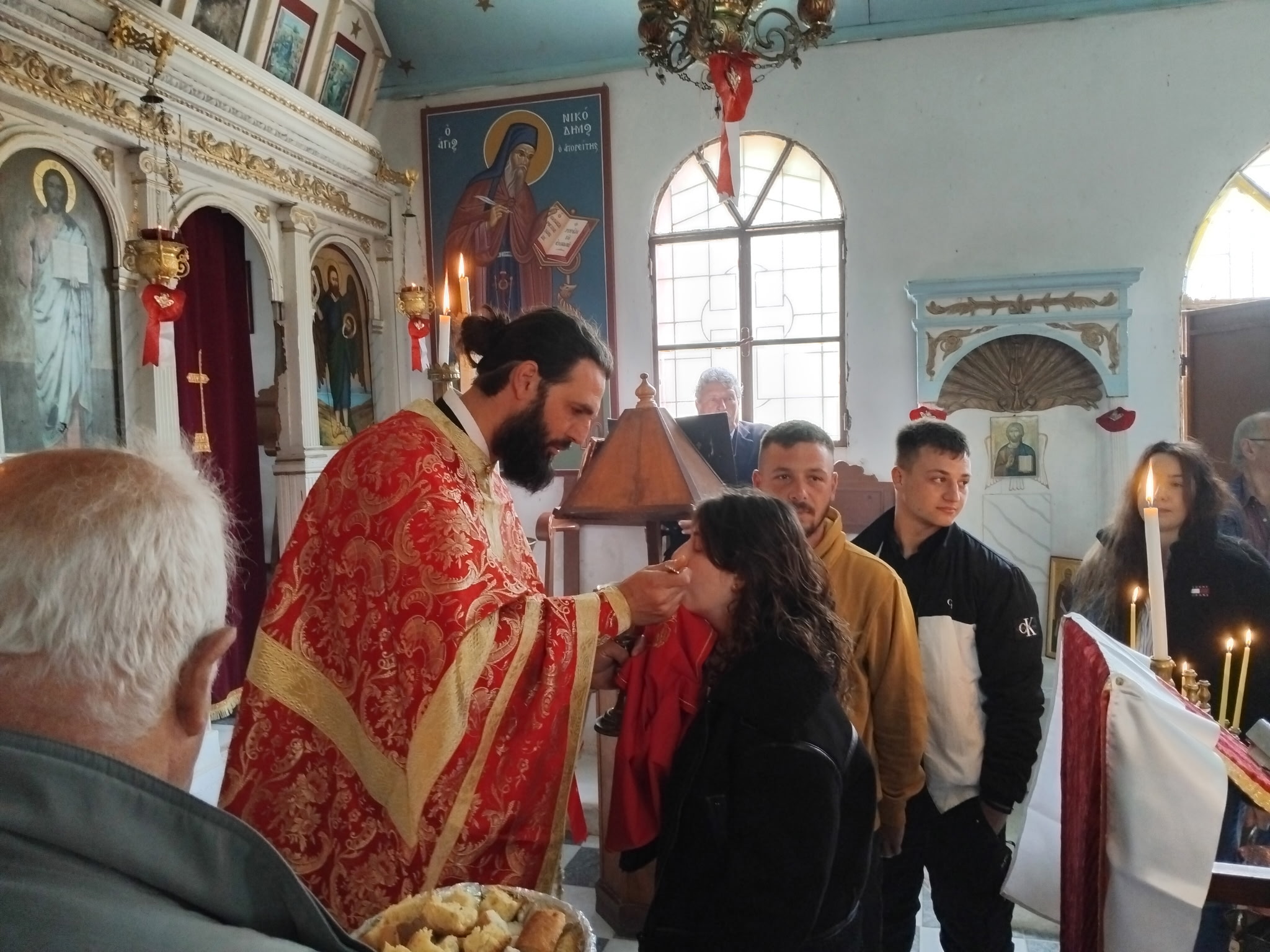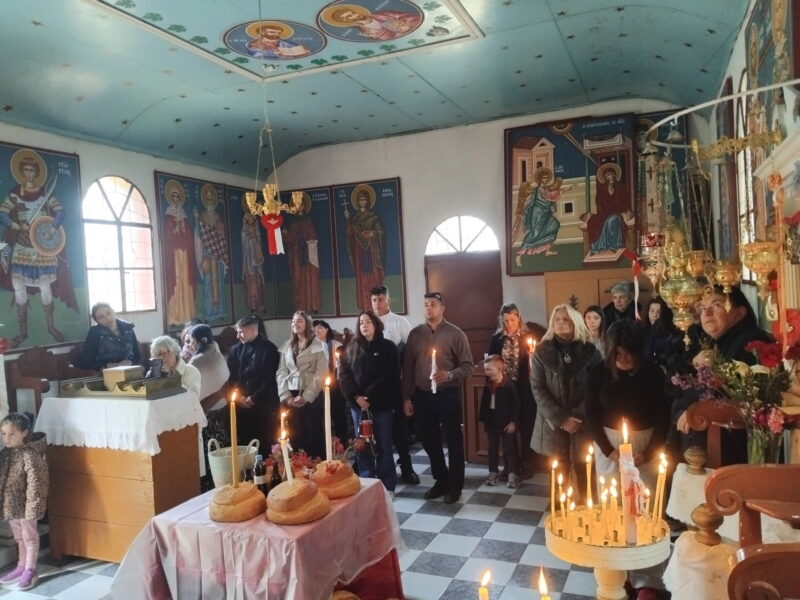 Η γιορτή, ξεκινούσε με την δέηση και την αρτοκλασία. Ο δημόσιος δρόμος από το χωριό, κατηφόριζε σε ένα στενό μονοπάτι που έφτανε σε ένα λιοστάσι. Κάτω ο γκρεμός. Ένα τοπίο «ήρεμο, μεσημβρινό». Εκεί βρισκόταν η εκκλησία. Στη δέηση έρχονταν κλήρος από την Πύλαρο και τη Θηνιά.