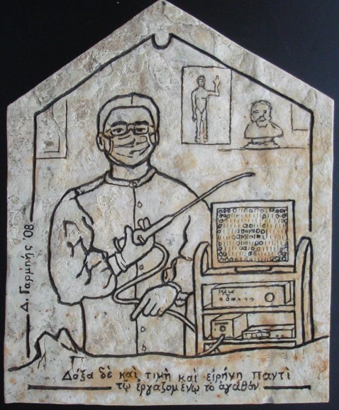 Η εκδήλωση-συζήτηση, στην οποία αναφερθήκαμε, θα είναι αναρτημένη στο διαδικτυακό κανάλι της Ιακωβατείου Βιβλιοθήκης και εκεί θα μπορεί να την αναζητήσει και να την παρακολουθήσει όποιος επιθυμεί. Η εικόνα είναι από ένα παλιότερο εικαστικό έργο μου, Ο ενδοσκόπος, χαραγμένη πέτρα.