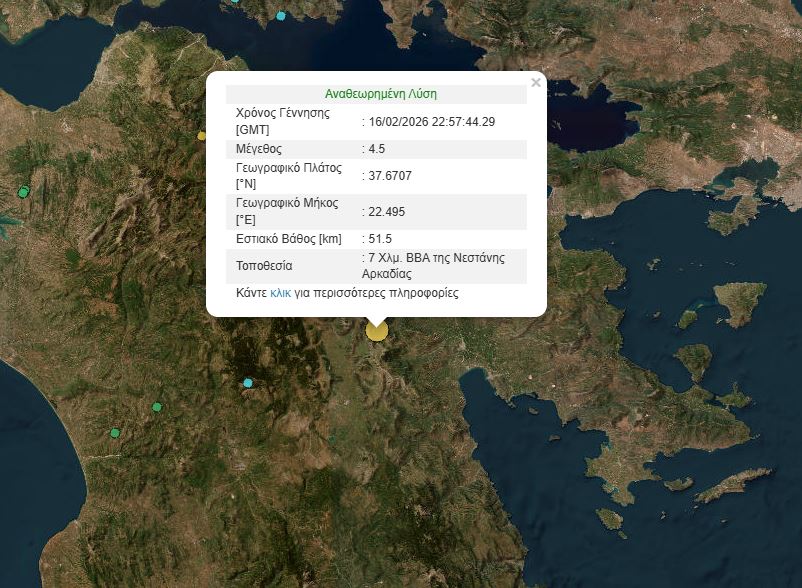 Σεισμική δόνηση 4,5 Ρίχτερ στην Αρκαδία – Αισθητή και στην Αττική