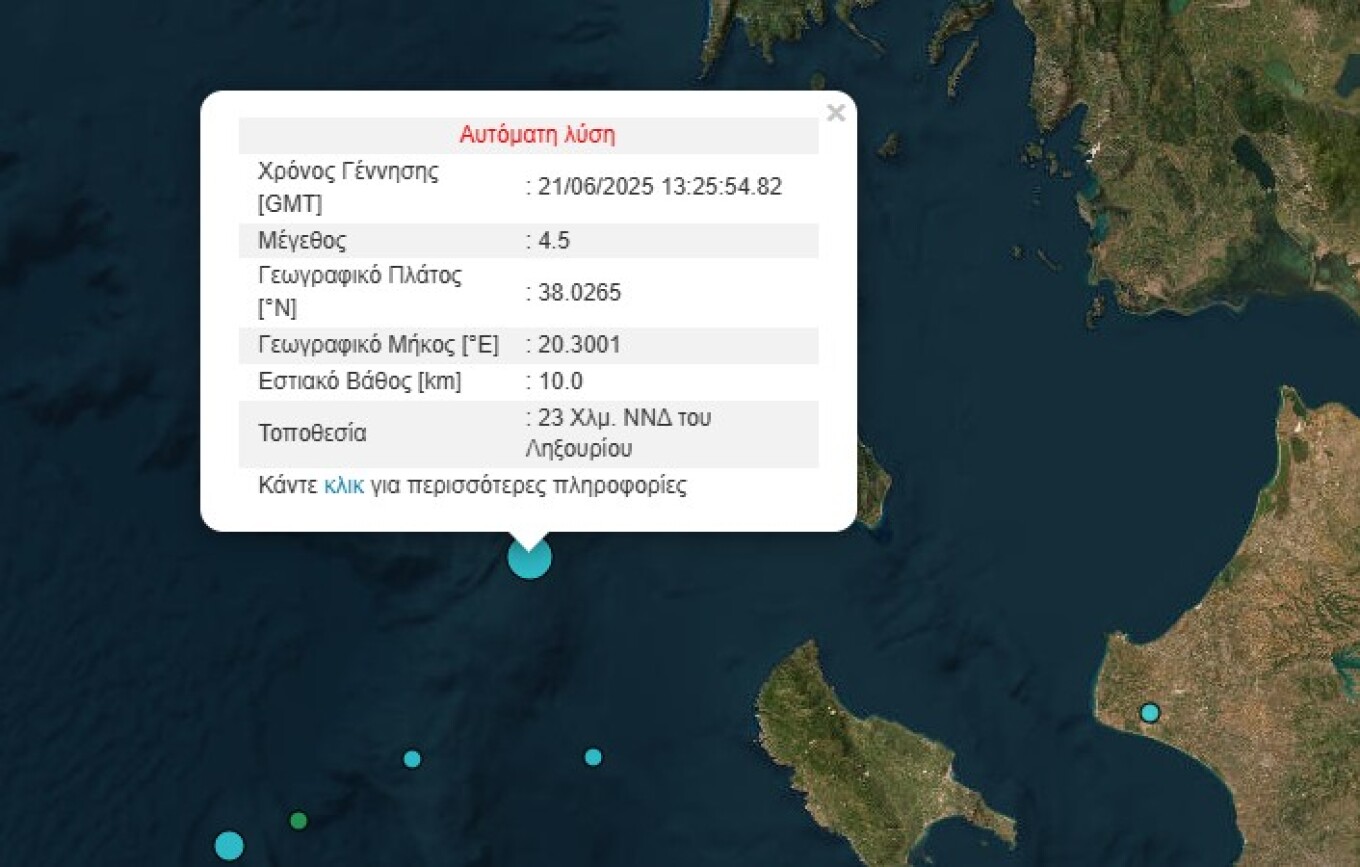 Σεισμός στην Κεφαλονιά: Κοντά στο Ληξούρι το επίκεντρο