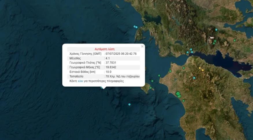 Σεισμική δόνηση σημειώθηκε το πρωί της Δευτέρας (7/7) ανοιχτά της Κεφαλονιάς.