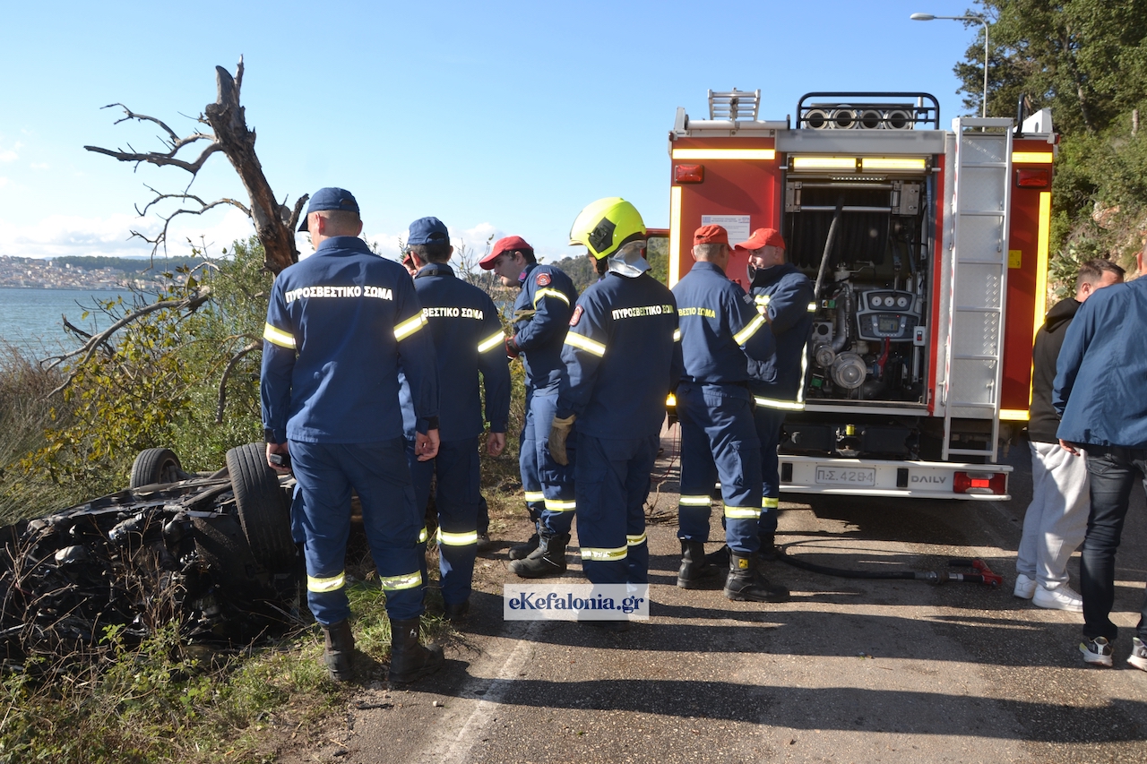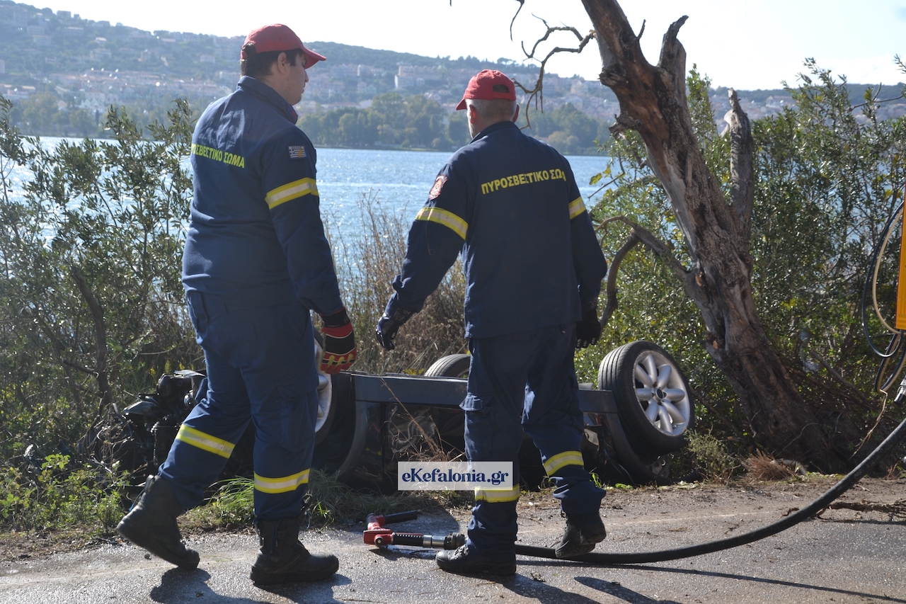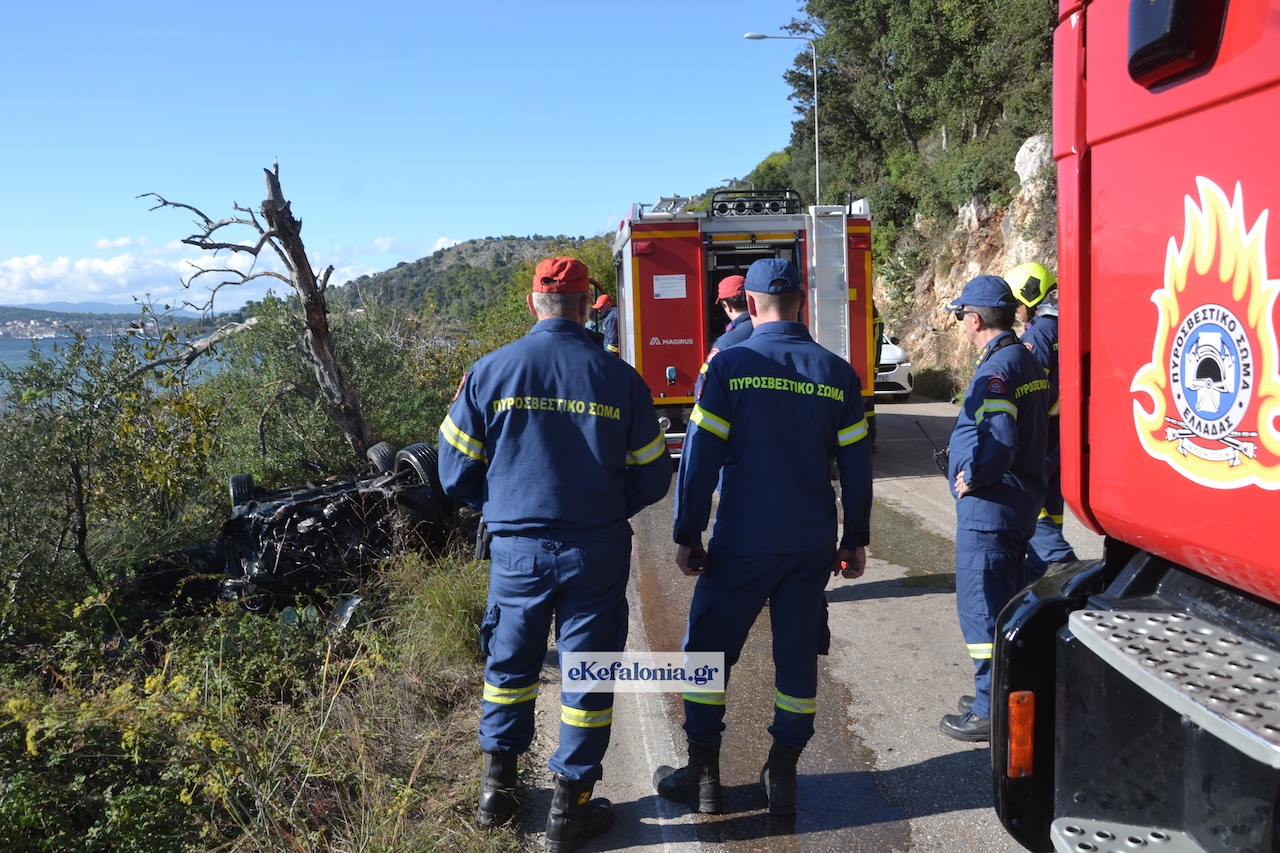 Στο σημείο έσπευσαν δυνάμεις της Πυροσβεστικής Υπηρεσίας και ασθενοφόρο του ΕΚΑΒ, προκειμένου να απεγκλωβίσουν και να μεταφέρουν τον οδηγό στο Γενικό Νοσοκομείο Αργοστολίου.