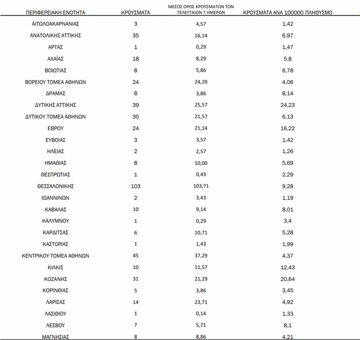 Ωστόσο στην Κοζάνη το ιικό φορτίο παραμένει σε υψηλά επίπεδα αν λάβει κανείς το ποσοστό των κρουσμάτων ανά 100.000 κατοίκους, που φτάνει το 20,64.