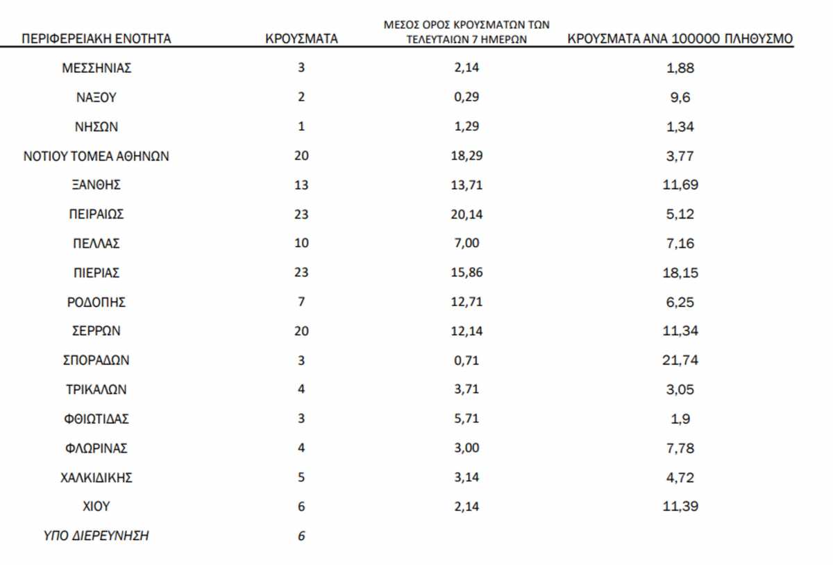 Αναλυτικά η γεωγραφική κατανομή των νέων κρουσμάτων του 24ώρου