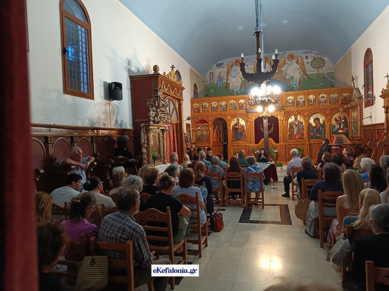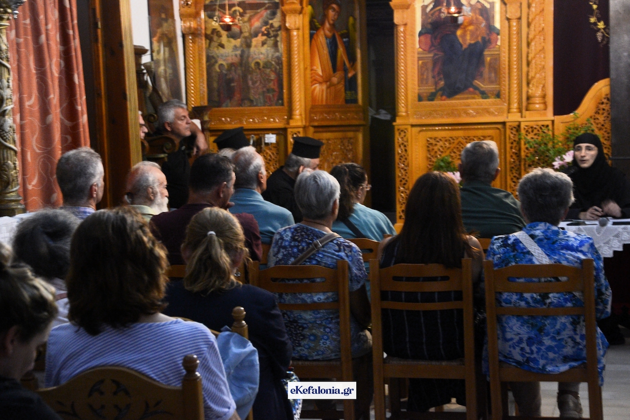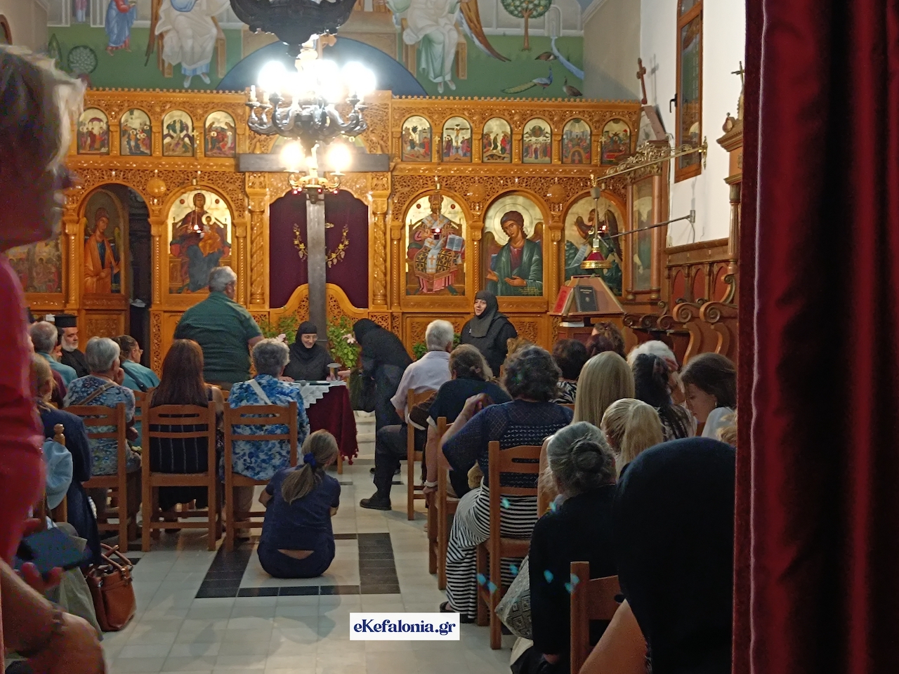 Από νωρίς, πλήθος πιστών αλλά και κληρικών από κάθε γωνιά της Κεφαλονιάς κατέκλυσαν τον ιερό Ναό της Μονής, προκειμένου να ακούσουν τα πνευματικά λόγια και τις διδαχές της Γερόντισσας.