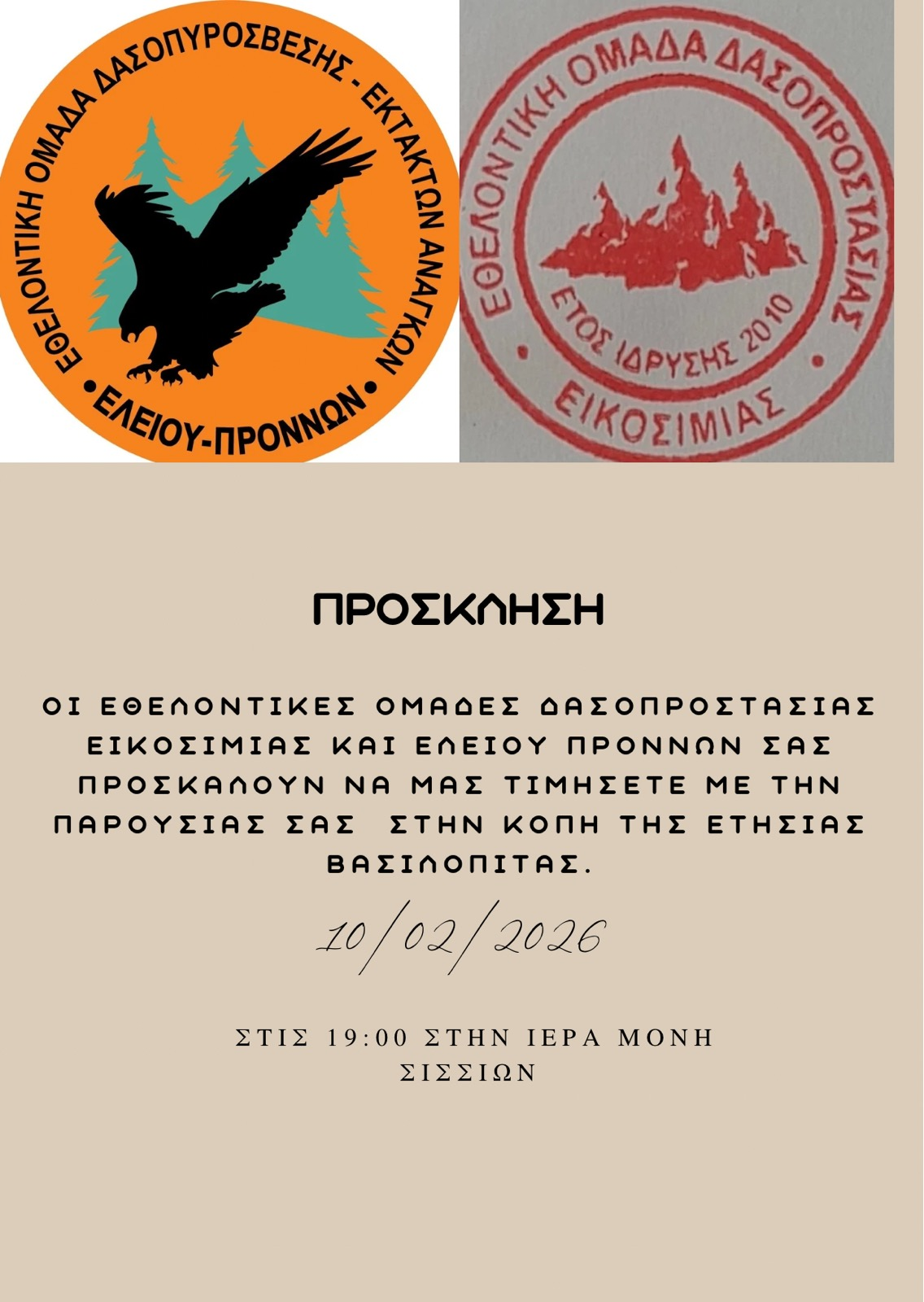 Στη Μονή Σισσίων η κοπή βασιλόπιτας των Εθελοντών Δασοπροστασίας