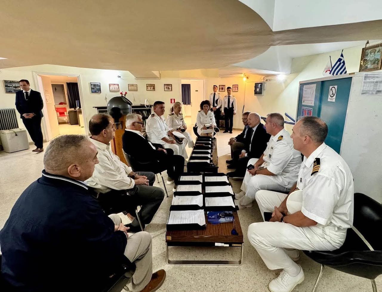 Στη συνέχεια, ο κ. Υφυπουργός επισκέφθηκε το Λιμεναρχείο Κεφαλληνίας, όπου ενημερώθηκε από τη Λιμενάρχη Αντιπλοίαρχο Λ.Σ. Ντζαβλάρα Ανδρούλα και τον Πρόεδρο της Ένωσης Προσωπικού Λ.Σ. Κεφαλονιάς και Ιθάκης (ΕΠΛΣΚΙ), Ανθυπασπιστή Λ.Σ. Χατζηγεωργίου Νικόλαο, για τα υπηρεσιακά ζητήματα, την υποστελέχωση των Υπηρεσιών και το κτηριακό πρόβλημα του Λιμεναρχείου.