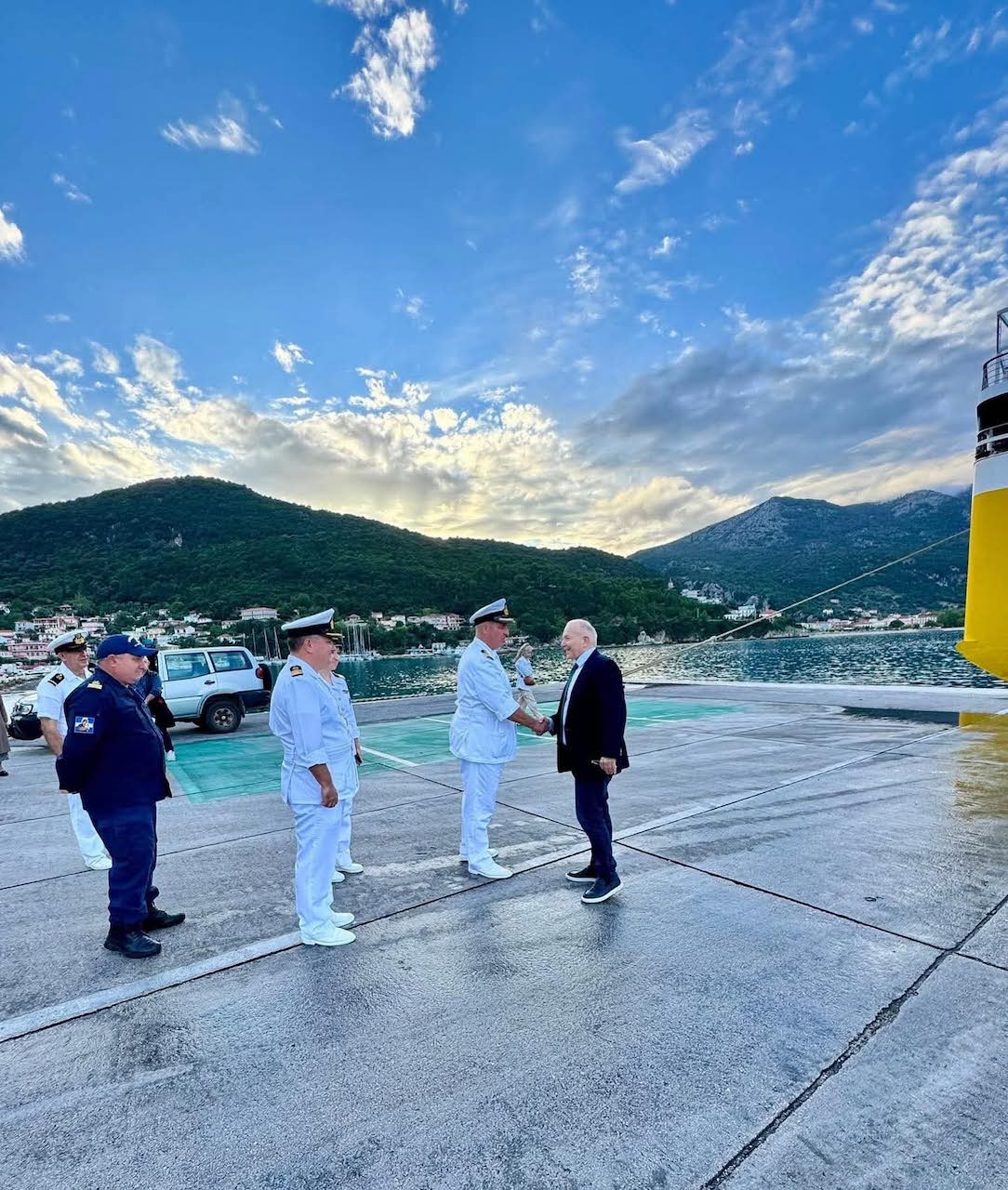 Ο Διοικητής της Ακαδημίας Εμπορικού Ναυτικού (ΑΕΝ) Ιονίων Νήσων, Πλοίαρχος Λ.Σ. Σιούτης Αθανάσιος, ο Περιφερειακός Διοικητής της 3ης ΠΕΔΙΛΣ Πλοίαρχος Λ.Σ. Κορίζης Κωνσταντίνος και η Λιμενάρχης Κεφαλληνίας Αντιπλοίαρχος Λ.Σ. Νταβάκου Ανθούλα.