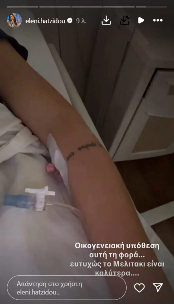 «Οικογενειακή υπόθεση αυτή τη φορά… Ευτυχώς το Μελιτάκι είναι καλύτερα», έγραψε η Ελένη Χατζίδου χωρίς ωστόσο να αποκαλύψει τον λόγο για τον οποίο χρειάστηκε να εισαχθεί στο νοσοκομείο.