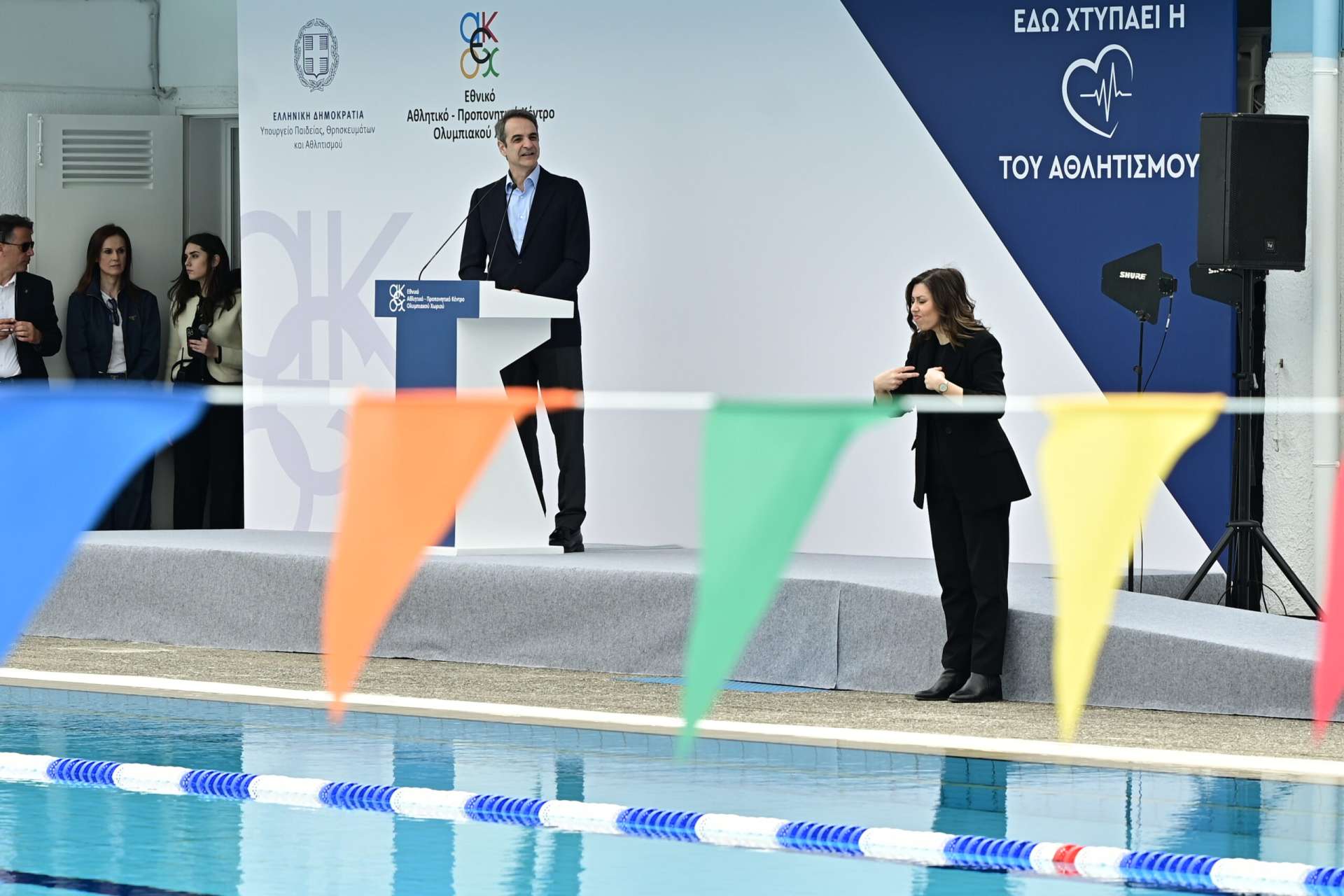 Όπως δήλωσε ο πρωθυπουργός: «Σήμερα βρισκόμαστε στην πολύ ευχάριστη στιγμή, 21 χρόνια μετά από εκείνη τη μοναδική διοργάνωση, η οποία ανέβασε την Ελλάδα τόσο ψηλά και μας έκανε όλες και όλους τόσο υπερήφανους, να αποδίδουμε πάλι στην τοπική κοινωνία, στους κατοίκους του Ολυμπιακού Χωριού, στα αθλητικά σωματεία της ευρύτερης περιοχής, αυτήν την πλήρως ανακατασκευασμένη Ολυμπιακή πισίνα, προκειμένου να μπορείτε να τη χαρείτε, να ψυχαγωγηθείτε, αλλά και να δώσουμε κυρίως στα νέα παιδιά την ευκαιρία να αγαπήσουν τον αθλητισμό και ειδικά την κολύμβηση.