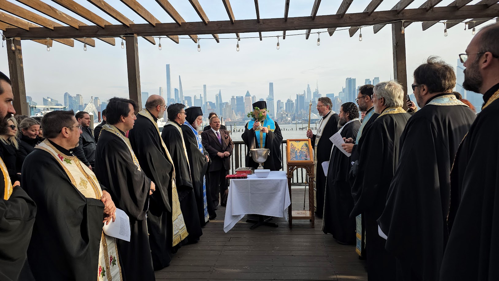Επειδή στην περιοχή δεν επιτρέπεται η κολύμβηση ο Μητροπολίτης Νέας Ιερσέης έριξε τρεις φορές τον Σταυρό στα ορμητικά νερά του ποταμού Χάντσον και οι ομογενείς έψαλαν το Απολυτίκιο των Θεοφανείων.