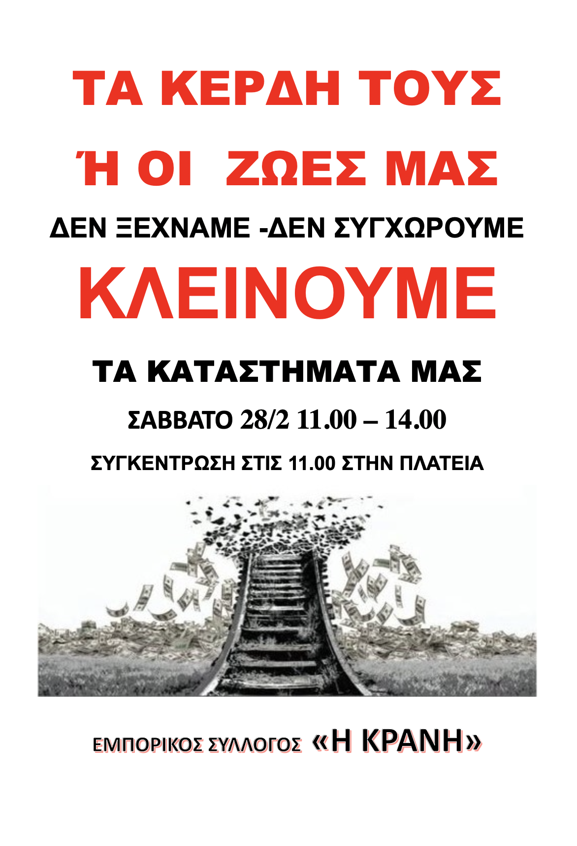 Σύλλογος Κράνη: Κλειστά τα Καταστήματα για τα Τέμπη το Σάββατο 28 Φεβρουαρίου (11:00–14:00) στην Κεφαλονιά