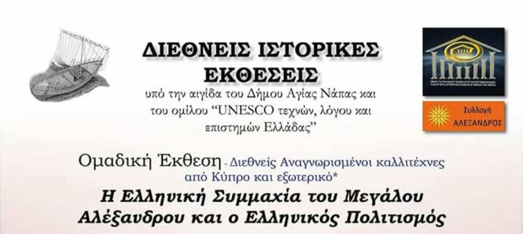 “Η Ελληνική συμμαχία του Μεγάλου Αλεξάνδρου και ο Ελληνικός πολιτισμός” θα εγκαινιαστεί από τον Δήμαρχο Αγίας Νάπας κ. Χρίστο Ζαννέττο την Κυριακή 6 Σεπτεμβρίου 2020.