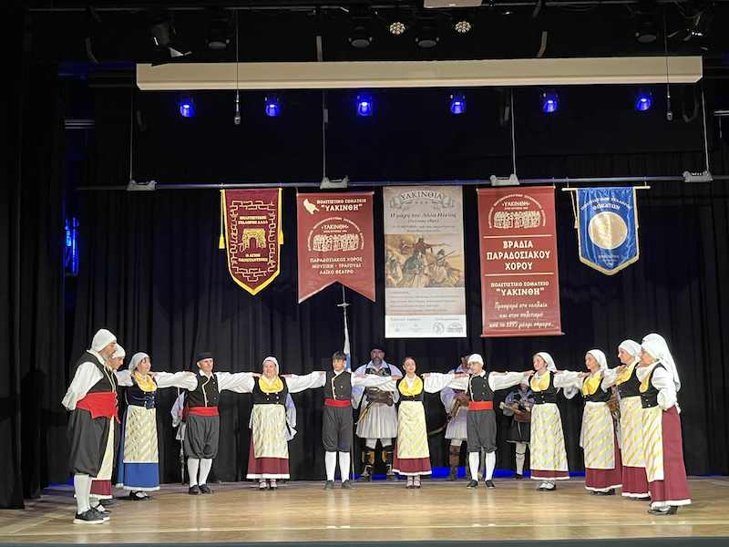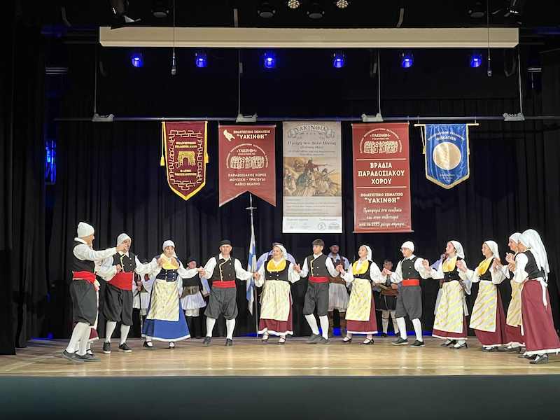 Το απόγευμα πραγματοποιήθηκε εκδήλωση στο δημοτικό θέατρο Ζακύνθου, στην οποία συμμετείχαν: το χορευτικό του Π.Σ. «Φωκάτων», ο Π.Σ. «Άγιος Κωνσταντίνος του Λάλα», ο σύλλογος «Χαράλαμπος Βιλαέτης» και ο συλλογος «Υακίνθη Ζακύνθου». Στις εκδηλώσεις παραβρέθηκαν ο βουλευτής, ο δήμαρχος και ο αντιδήμαρχος Ζακυνθου.