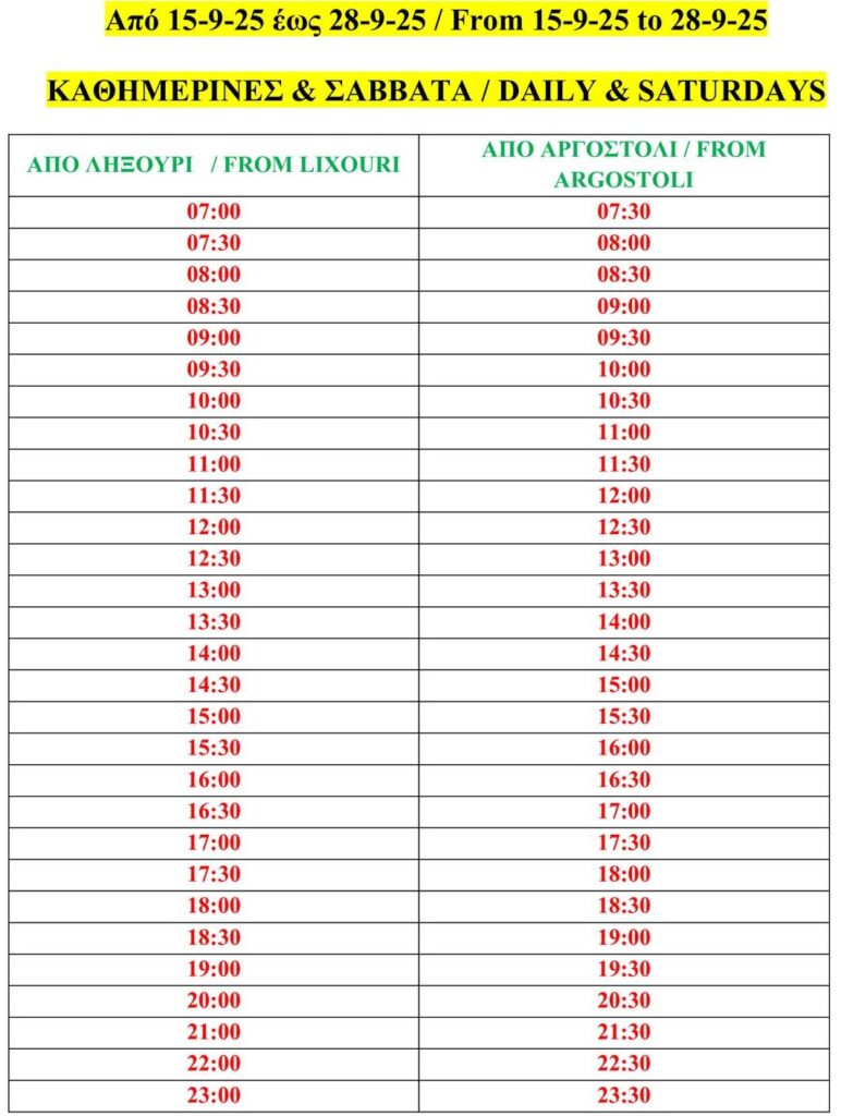 Τα νέα δρομολόγια στη γραμμή Ληξούρι – Αργοστόλι από 15/09