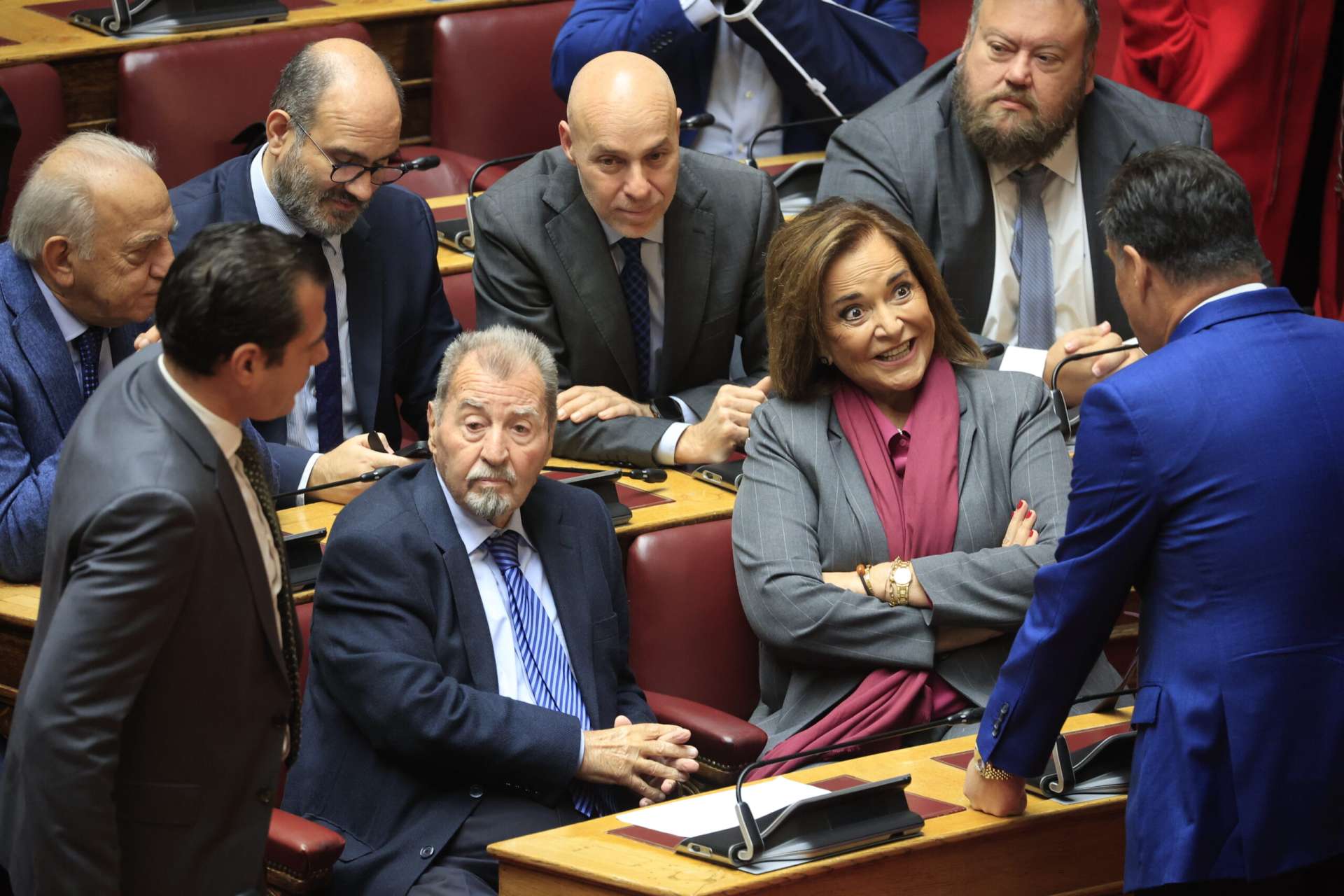 Η πρώην υπουργός και βουλευτής της ΝΔ, Ντόρα Μπακογιάννη -που εισήλθε πολύ νωρίς στην Ολομέλεια- προσέλκυσε το ενδιαφέρον πολλών στελεχών του κόμματος, με πιο χαρακτηριστικό το πηγαδάκι που σχημάτισε γύρω της με τους υπουργούς Βασίλη Κικίλια, Νίκο Παπαθανάση, ενώ μετά από λίγο προστέθηκαν Κωστής Χατζηδάκης, Νίκη Κεραμέως και οι βουλευτές Θανάσης Πλεύρης και Νίκος Βλαχάκος.