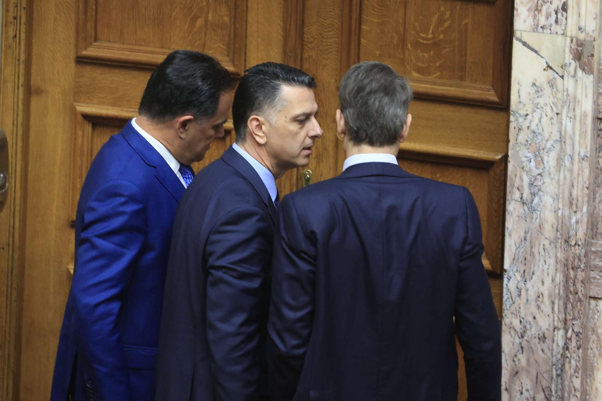 Αμέσως μετά το τέλος της ψηφοφορίας υπουργοί και βουλευτές της ΝΔ κατέκλυσαν το εντευκτήριο της Βουλής με αρκετούς από αυτούς να πλαισιώνουν τον υφυπουργό Κλιματικής Κρίσης και Πολιτικής Προστασίας, Χρήστο Τριαντόπουλο.