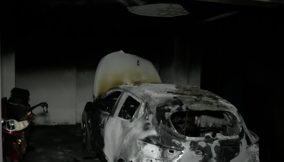 Η φωτιά επεκτάθηκε άμεσα σε παρακείμενα οχήματα, με αποτέλεσμα να προκληθούν σοβαρές ζημιές σε δύο μοτοσικλέτες και ένα σκούτερ που βρίσκονταν δίπλα στο αυτοκίνητο.