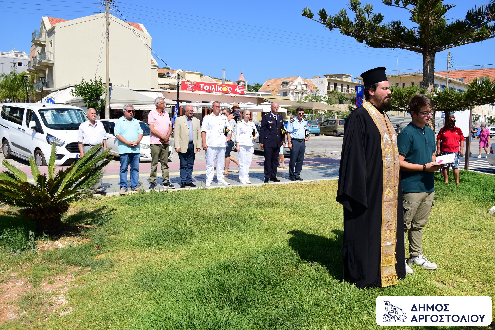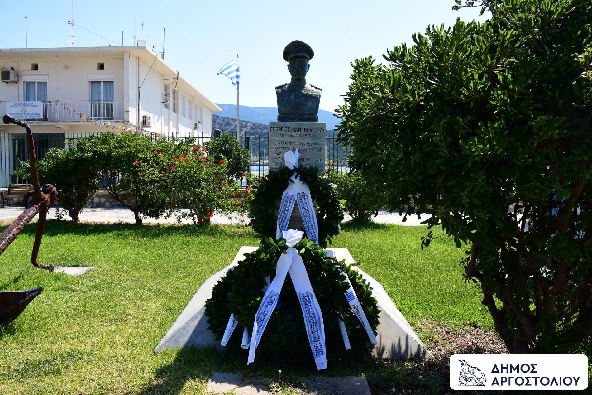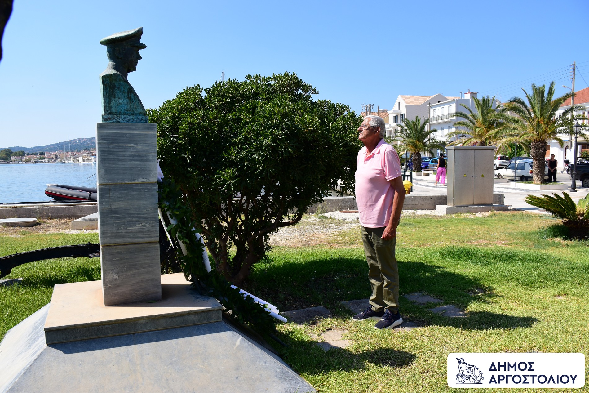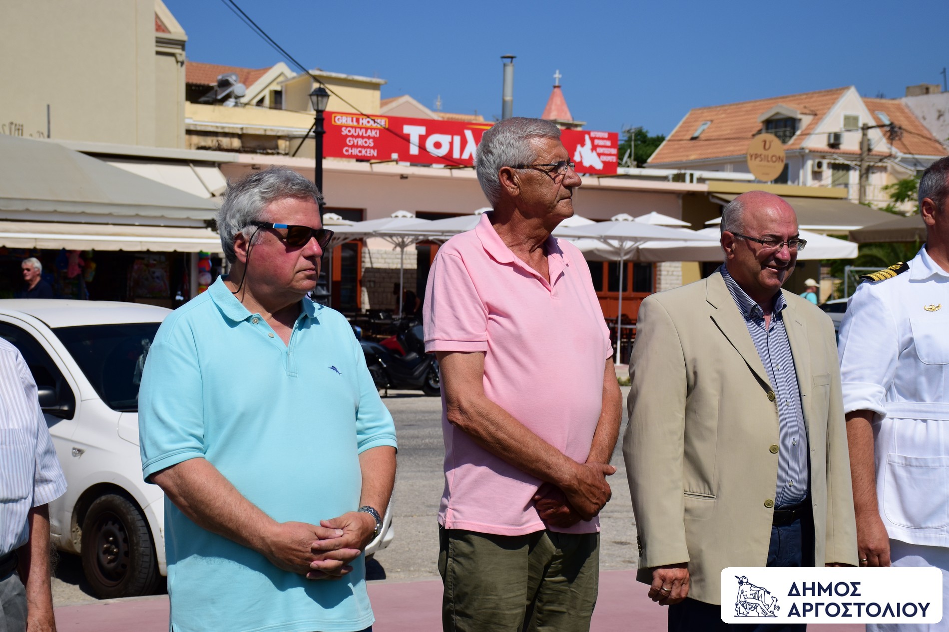 Ακολούθως, κατέθεσαν στεφάνια στον εξωτερικό περίβολο του Λιμεναρχείου Αργοστολίου, στην προτομή του Αντιπλοιάρχου Γεωργίου Μπλέσσα, ήρωα κυβερνήτη του αντιτορπιλικού «Βασίλισσα Όλγα», ο οποίος έπεσε ηρωικά μαχόμενος στις 26 Σεπτεμβρίου του 1943, από γερμανικά αεροπορικά πυρά.