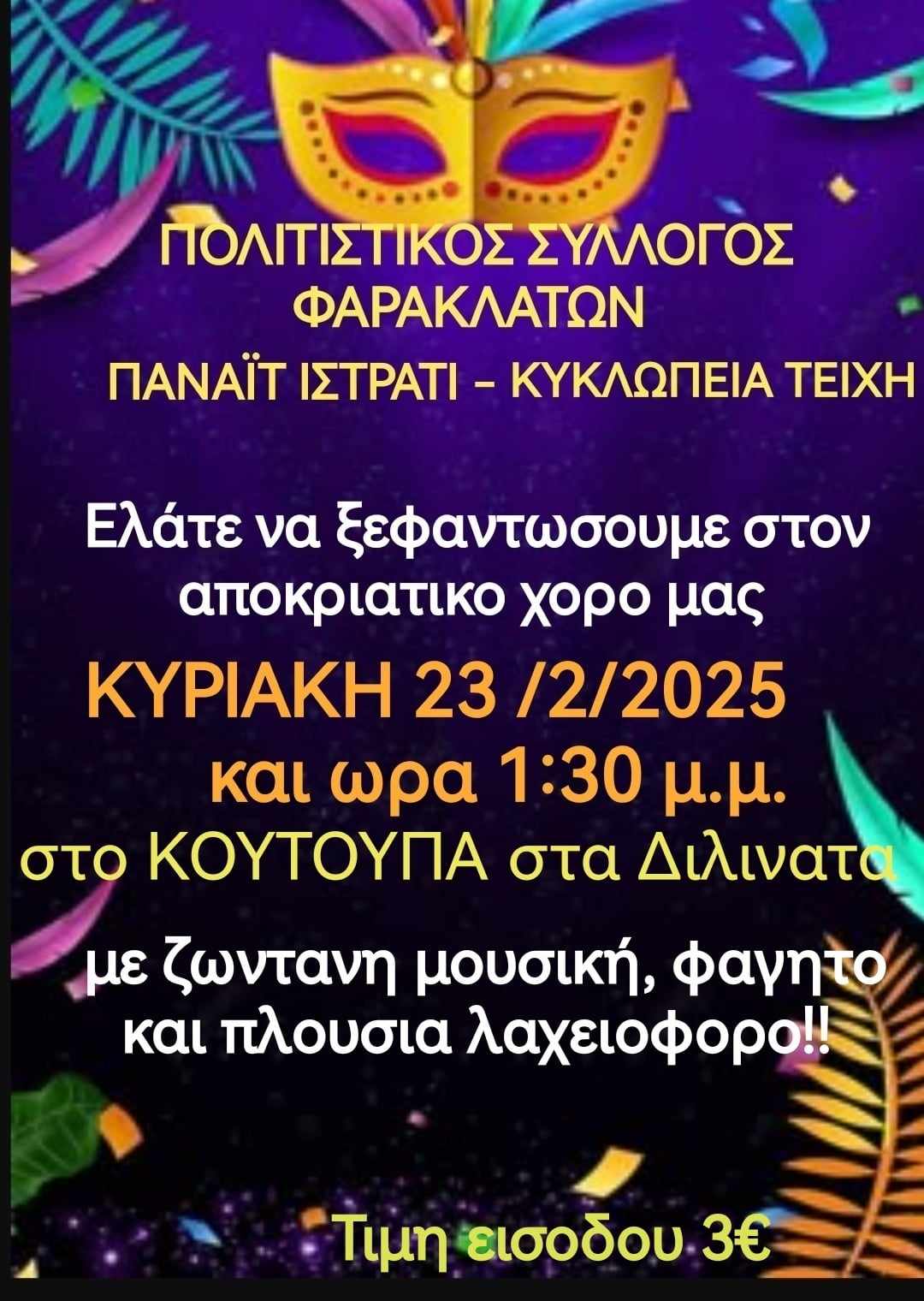 Την Κυριακή ο Aποκριάτικος χορός του Πολιτιστικού Συλλόγου Φαρακλάτων