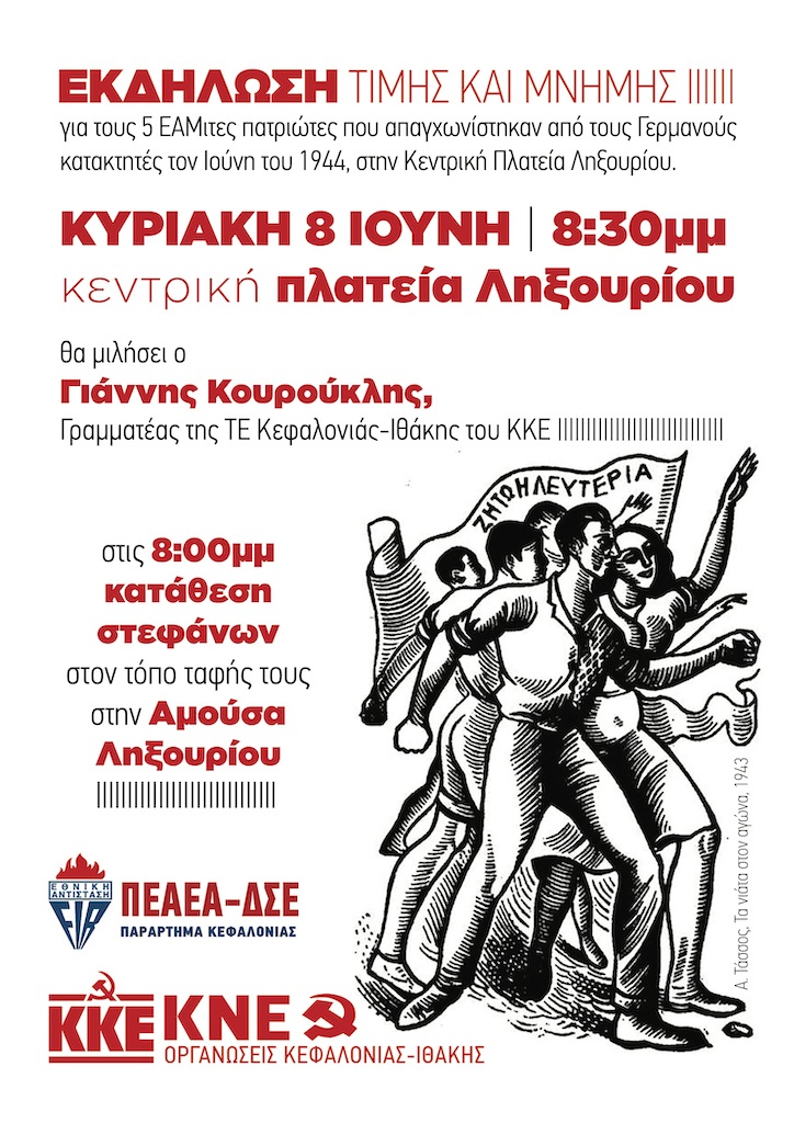 Το ΚΚΕ τιμά την Κυριακή τους πέντε ήρωες στην Πλατεία Ληξουρίου