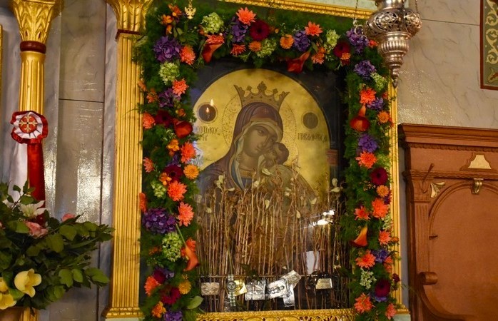 *Στην φωτογραφία η ιερά εικόνα της Παναγίας Γραβαλιώτισσας (Παναγία των Κρίνων) στην Πάστρα