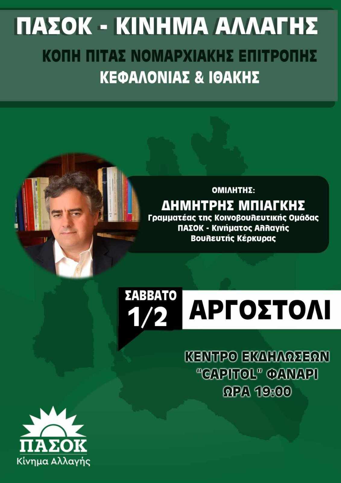 Επίσημος προσκεκλημένος – ομιλητής θα είναι ο Δημήτρης Μπιάγκης, Γραμματέας της Κοινοβουλευτικής Ομάδας του ΠΑ.ΣΟ.Κ. & Βουλευτής Κέρκυρας.