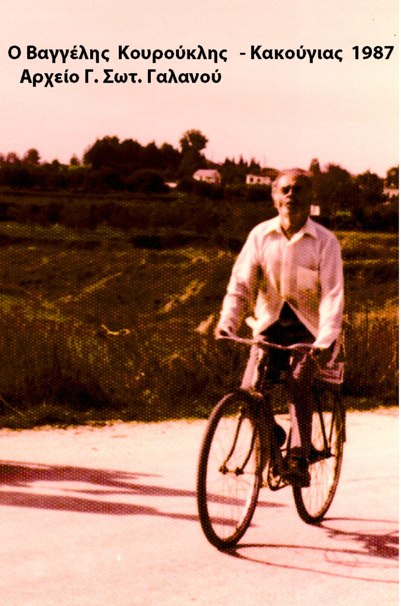 Σε έναν τέτοιο κόσμο, ανάμεσά μας ήρθε και πέρασε από το Ληξούρι και μια μορφή ονομαστή, ο Βαγγέλης Κουρούκλης, ο Κακούγιας όπως ήταν το παρανόμι της οικογένειά του. ( Γεννήθηκε 5-5-1908 και πέθανε στις 12-9-1992 Ληξούρι).