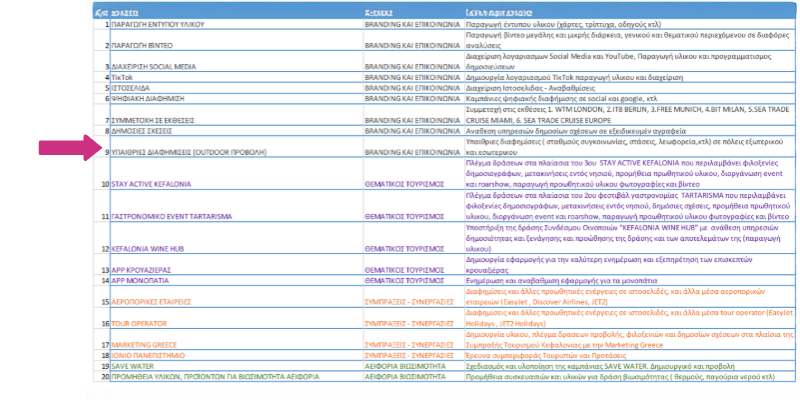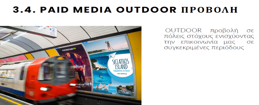 1.Η δράση υπαίθρια διαφήμιση (OUTDOOR ΠΡΟΒΟΛΗ), υπαίθριες διαφημίσεις (σταθμούς συγκοινωνίας, στάσεις, λεωφορεία, κτλ) σε πόλεις εξωτερικού και εσωτερικού), αποτελεί προγραμματισμένη δράση του σχεδίου προβολής του δήμου το οποίο εγκρίθηκε με την υπ. αρίθμ. 28/2025 ΨΤΠΗ46ΜΓΤΤ-ΚΞΧ απόφαση του δημοτικού συμβουλίου.