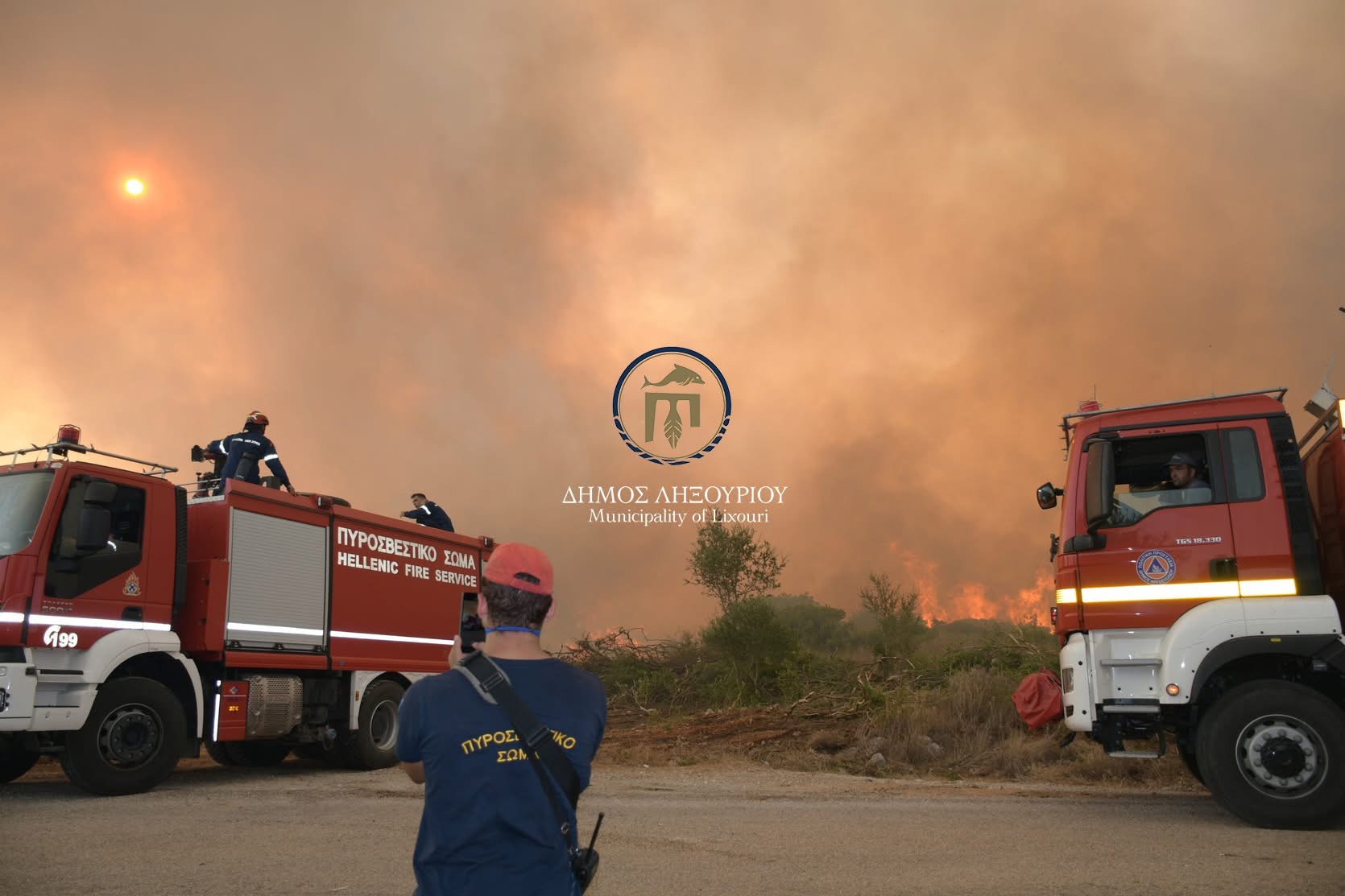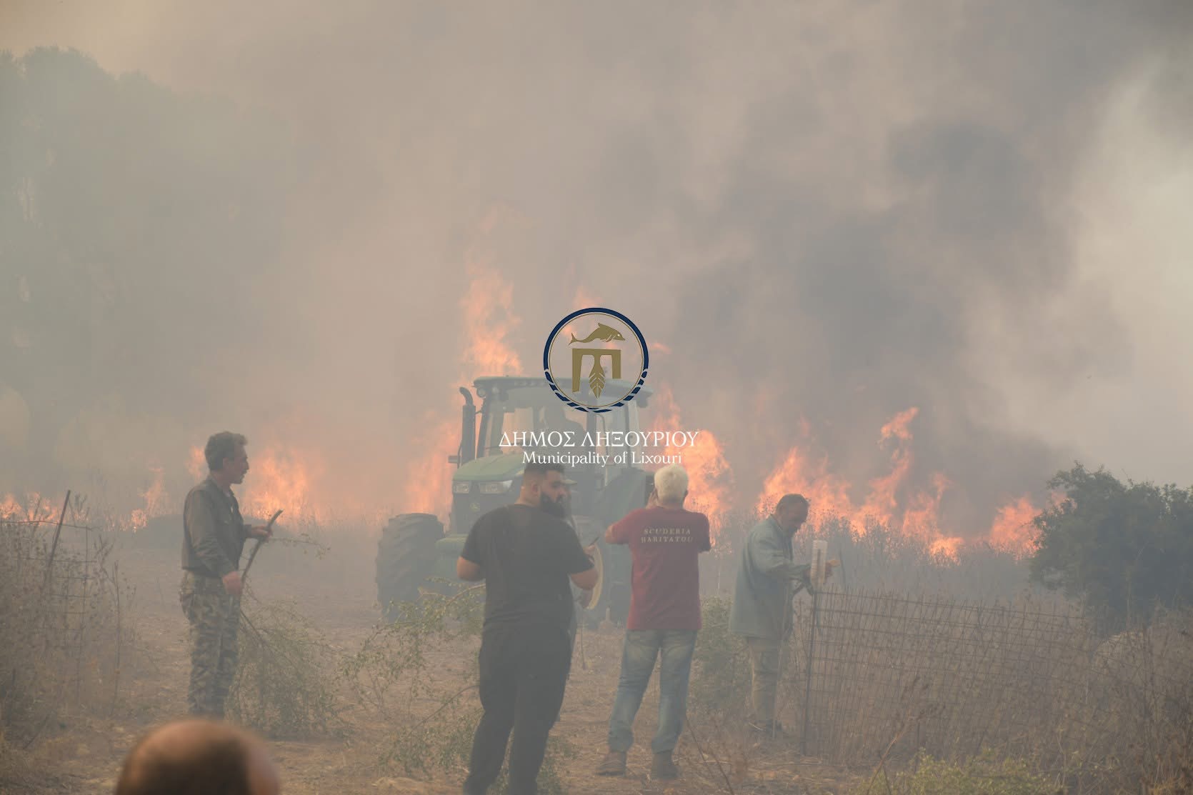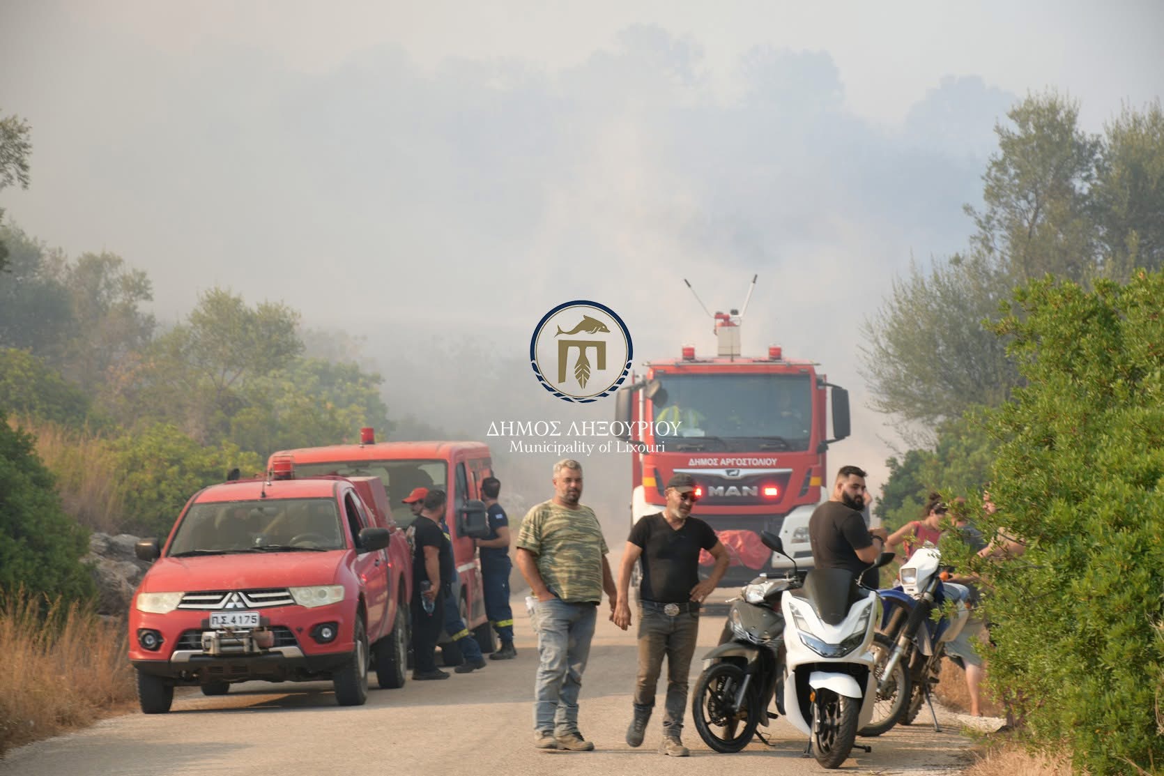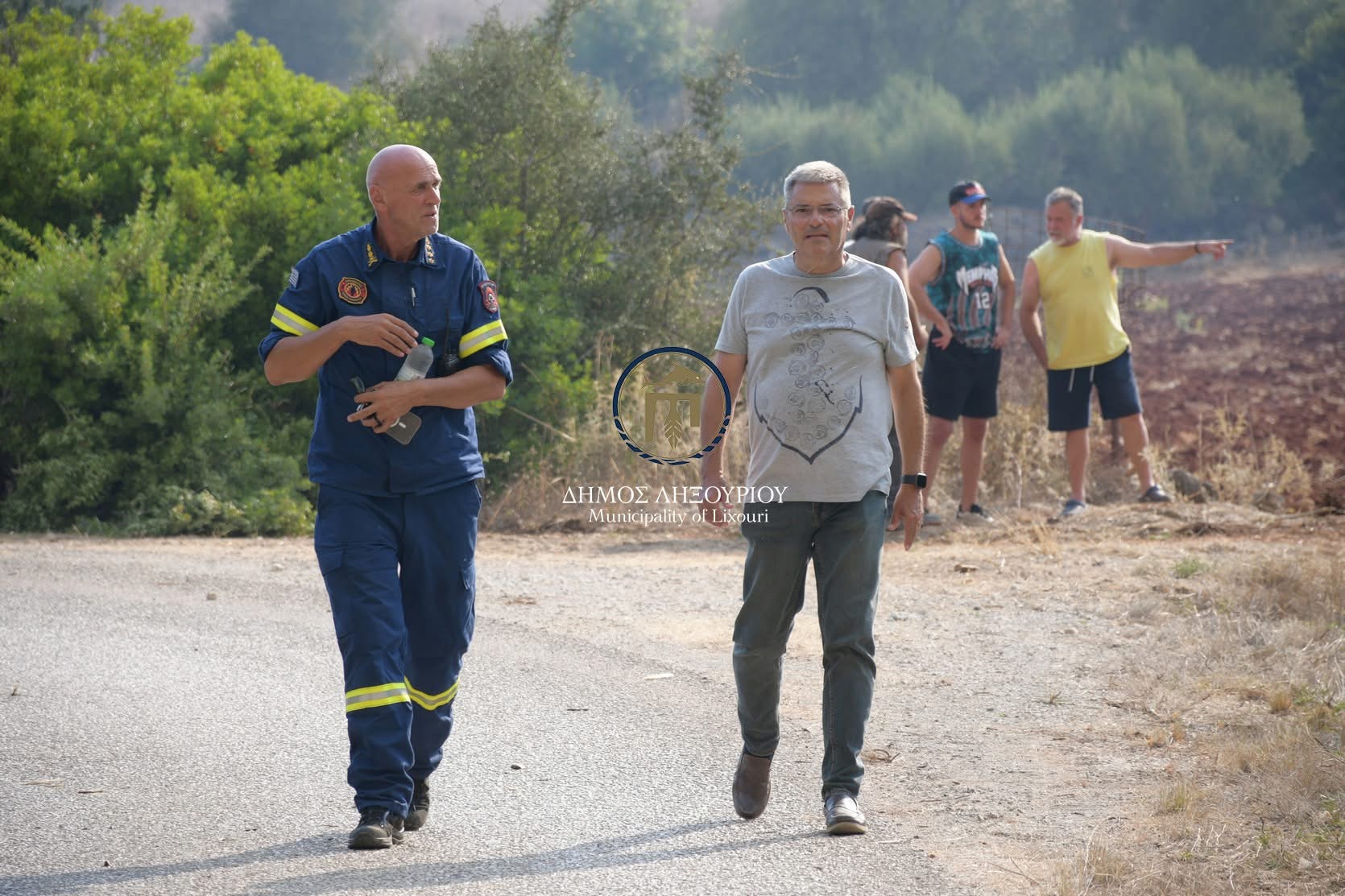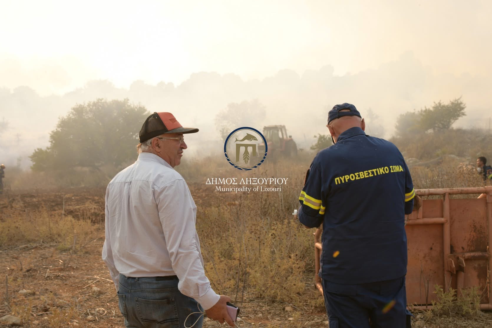 Οι Δήμαρχος Ληξουρίου Γ.Κατσιβέλης, Βουλευτής Κεφαλληνίας-Ιθάκης Π.Καππάτος, Αντιπεριφερειάρχης Κεφαλληνίας-Ιθάκης Σ.Κουρής, Πρόεδρος Αγροδιατροφικής Σύμπραξης Ιονίων Νήσων Ν.Αραβαντινός, αλλά και συνεργείο της ΔΕΔΔΗΕ με τον αν.Διευθυντή Άγ.Θεοφιλάτο, ήταν από την πρώτη στιγμή εκεί να συνδράμουν τα μέγιστα στην μάχη αυτή.